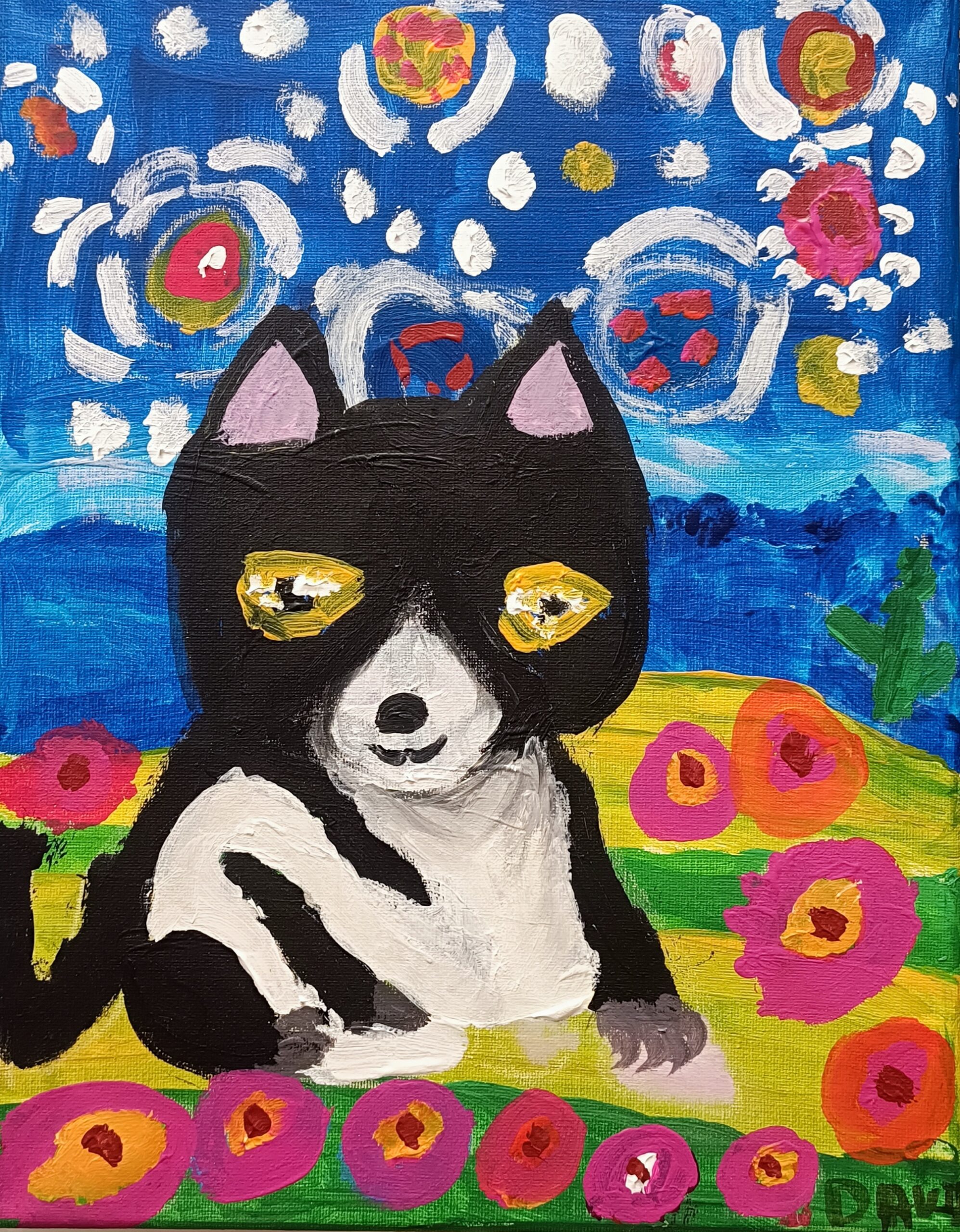 Puppy under the starry sky